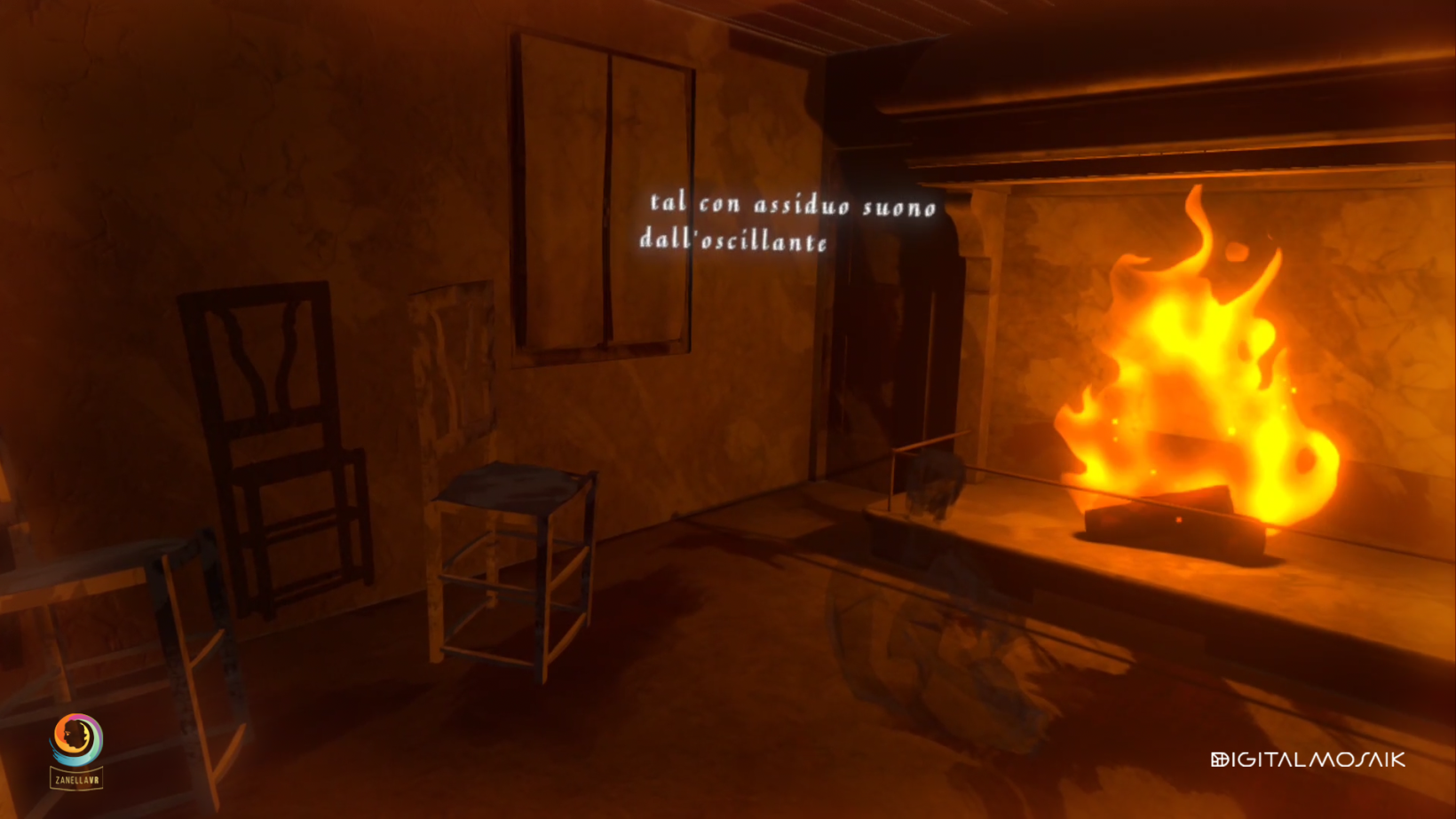 Indossando il visore l'utente viene trasportato all'interno della casa natale di Giacomo Zanella, a Chiampo, dove, accompagnato dalla voce teatrale del poeta, vivrà un viaggio alla scoperta della sua poesia e dei luoghi che l'hanno ispirato. Dall’inquietudine iniziale a una gioia lirica piena di colori, l’esperienza racconta la metamorfosi di Zanella attraverso emozioni e immagini, che rendono la sua poetica viva.